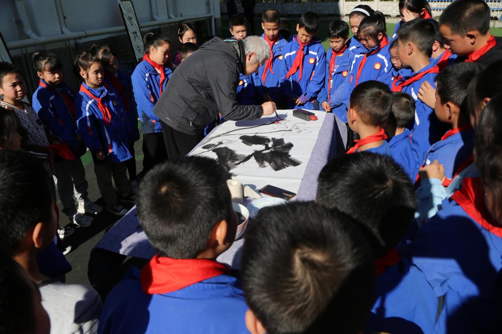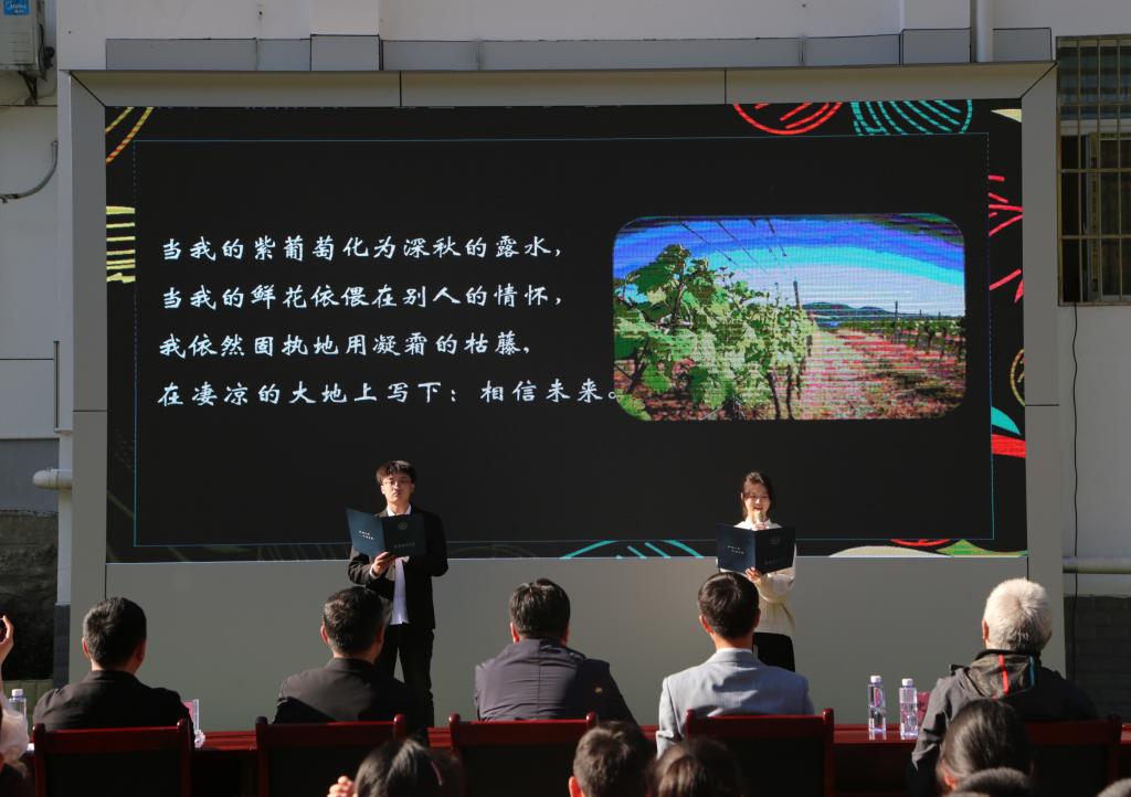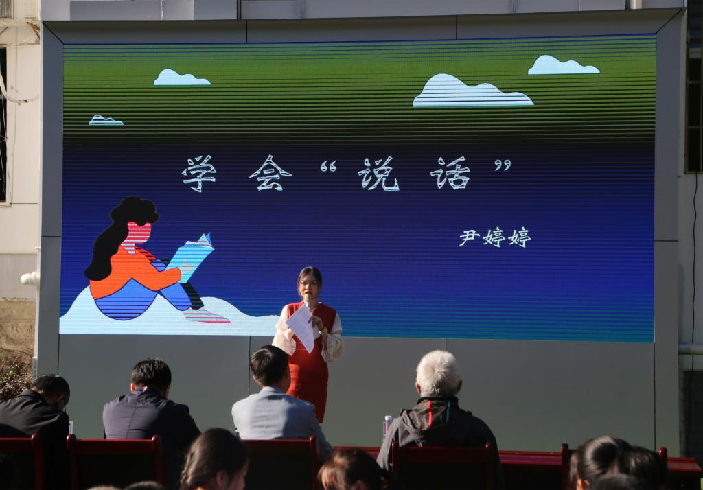 活动中,我校人文与外国语学院尹婷婷老师以《认识“说话”》为题,结合自己的演讲和朗诵经验,从内涵意义、如何准备两个方面为师生作了一场生动的讲座。两校师生代表诵读了《买一张火车票去看母亲(节选)》《狼牙山五壮士》《相信未来》《延安,我把你追寻》等篇目,经典诗句句句入耳、声声入心,使师生们感受到澎湃的爱国情怀。人文与外国语学院史云龙老师现场挥毫泼墨,进行了国画教学示范,与师生进行互动交流,营造了学习优秀传统文化的浓厚氛围,使在场的每位师生都沉浸于其中,享受着经典文化的熏陶和滋养。