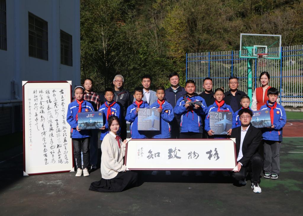 活动结束后,我校向洪石小学捐赠了航模和老师书画作品。